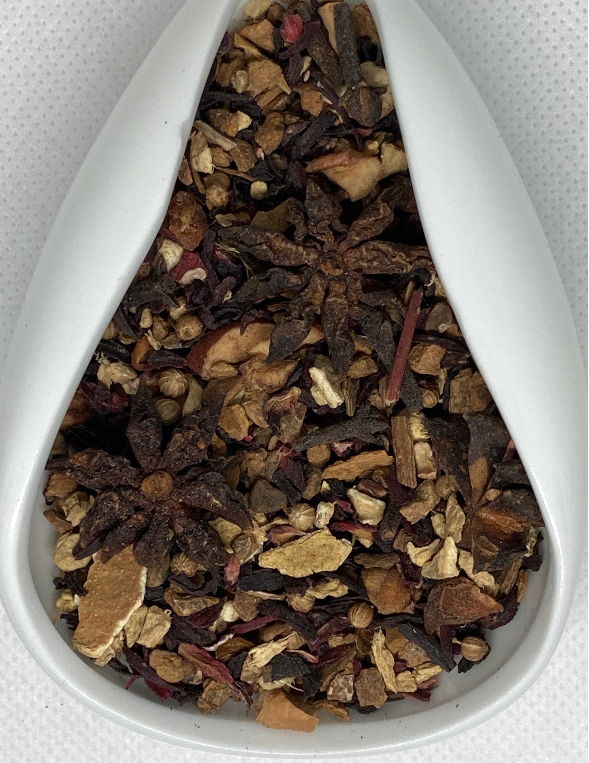 каркадэ, яблоки, корка апельсина, корень имбиря, корица, бадьян, кориандр,гвоздика, ароматизатор
